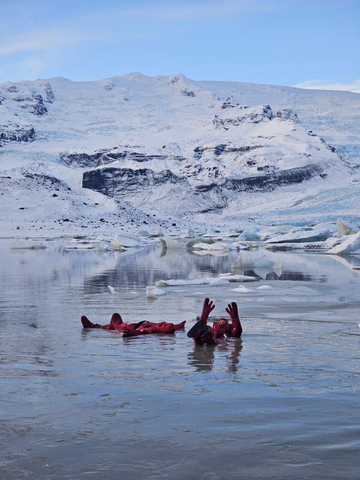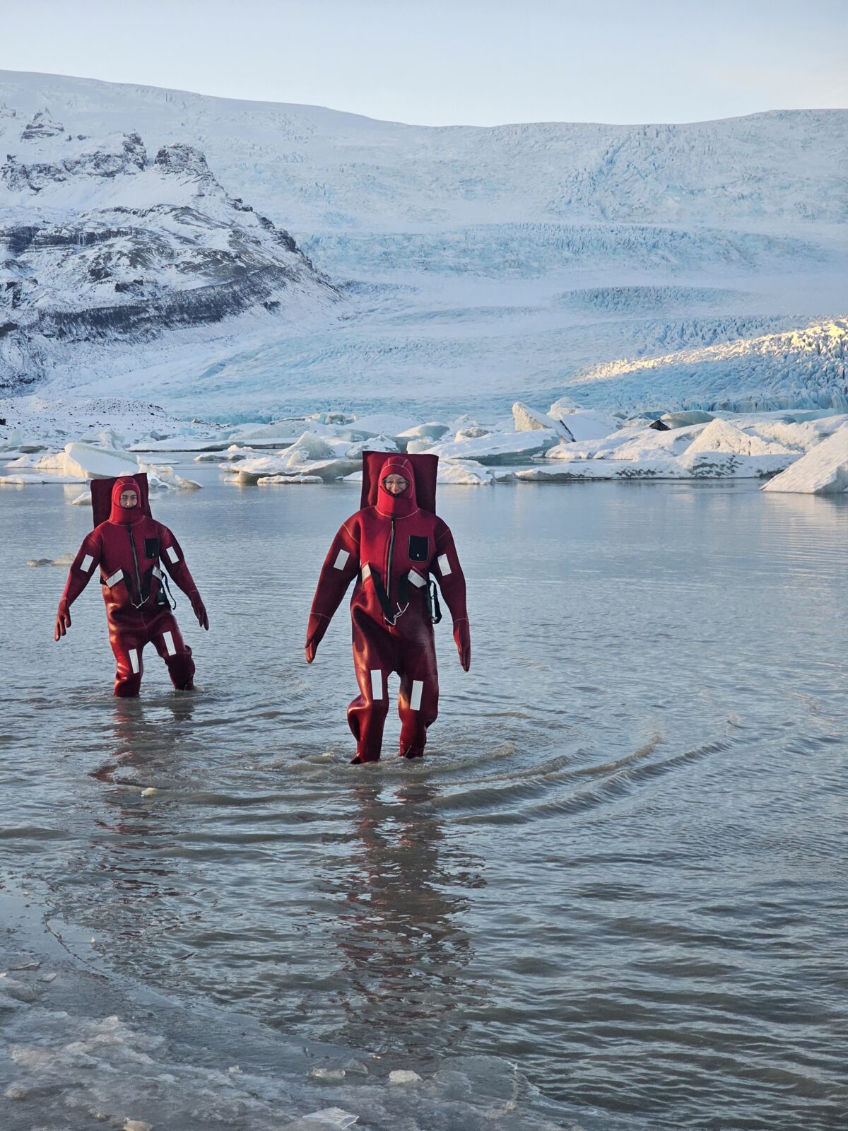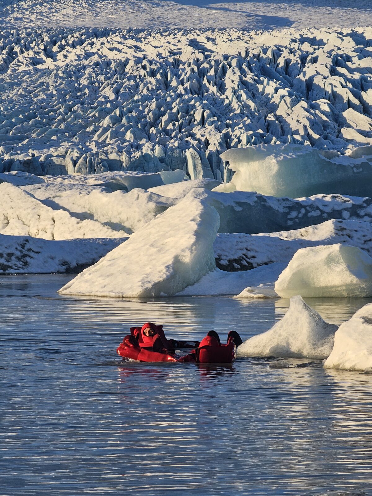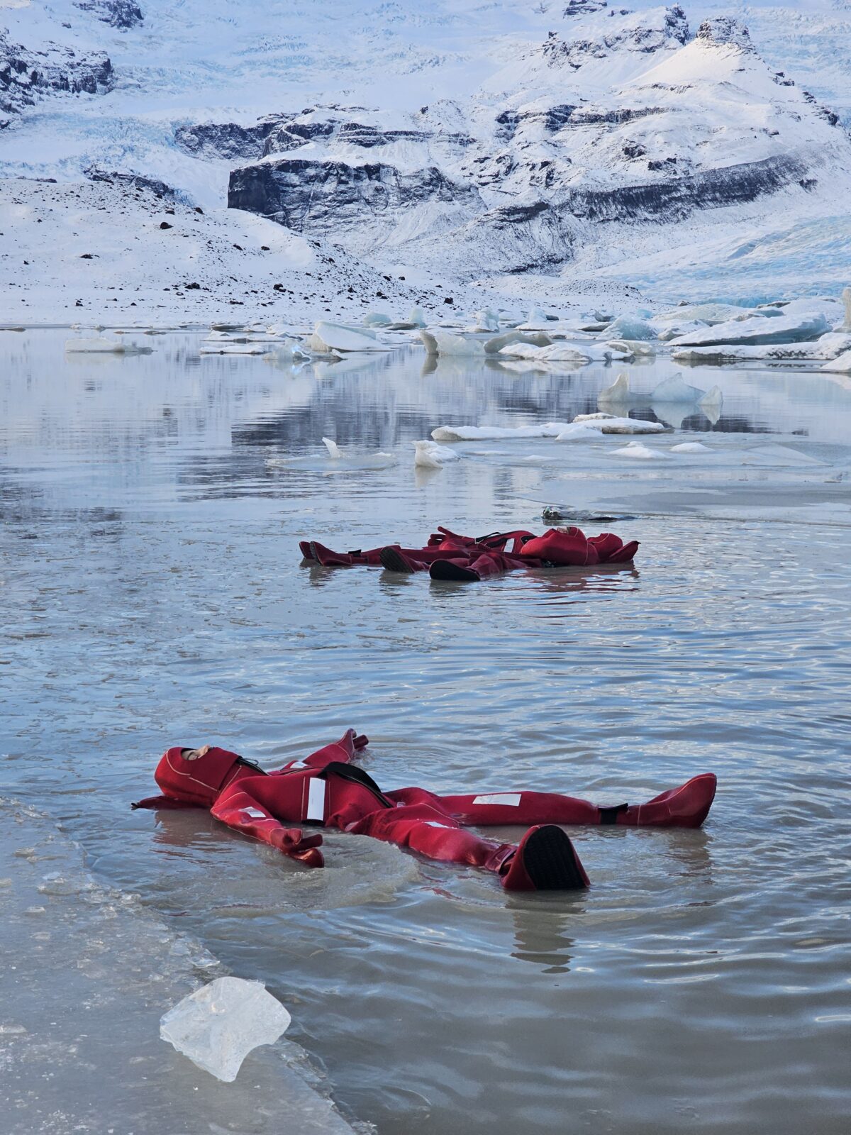 Fjallsárlón glacier lagoon ice floating is a unique floating experience in South Iceland. It offers you a moment of weightless calm, a chance to disconnect and reset both body and mind. Feel the rhythm of the icy water, breathe in the pure glacier air, and let the peaceful surroundings work their quiet magic. Your adventure begins at our tour reception by Fjallsárlón, where your guide will greet you. A short walk takes you down to the glacier lagoon, where you’ll receive a safety briefing and your floatation suit. When you are all dressed and ready, you will gently enter the water. During this adventure, you will experience the incredible sensation of floating among icebergs, safely supervised by your professional guide. Afterward, we’ll return to the reception area to warm up and enjoy a complimentary hot drink at our cozy Frost Restaurant.