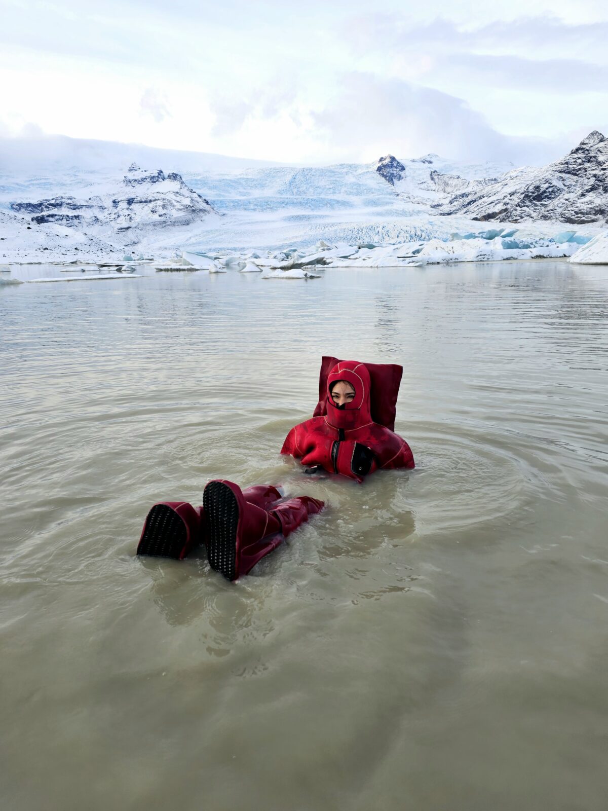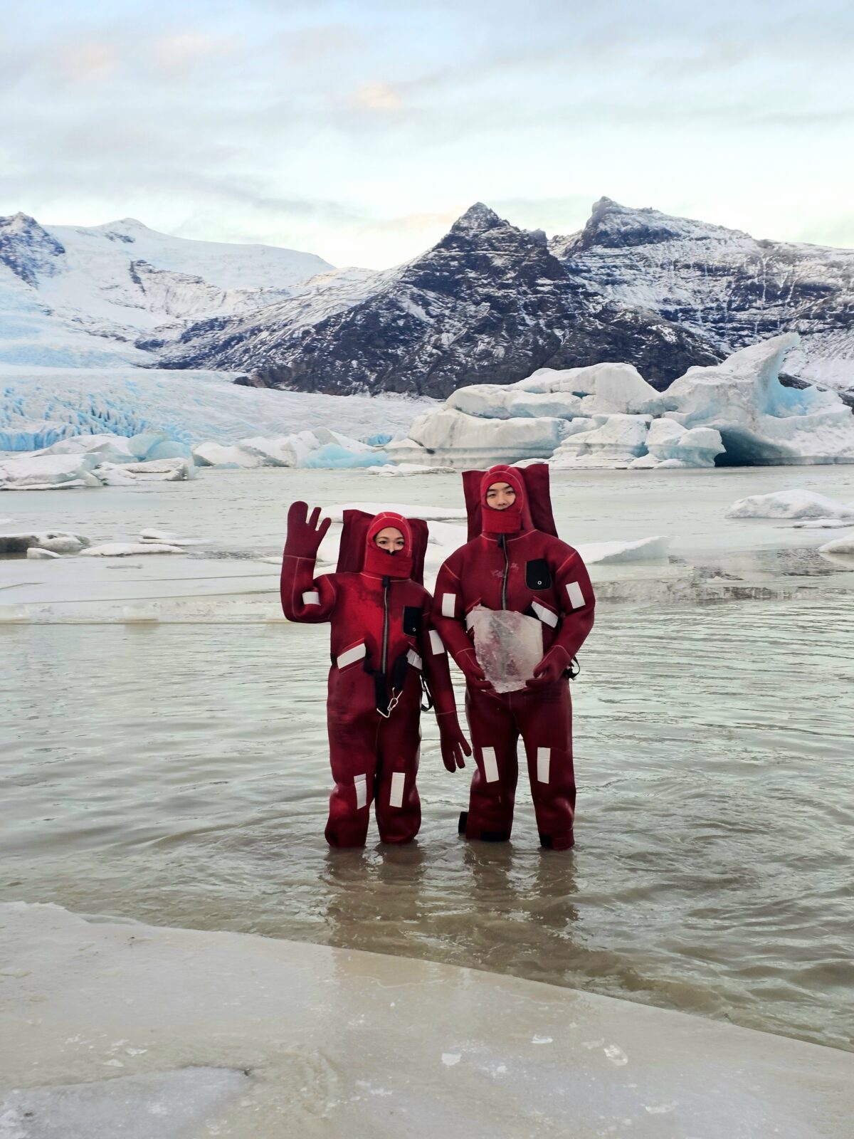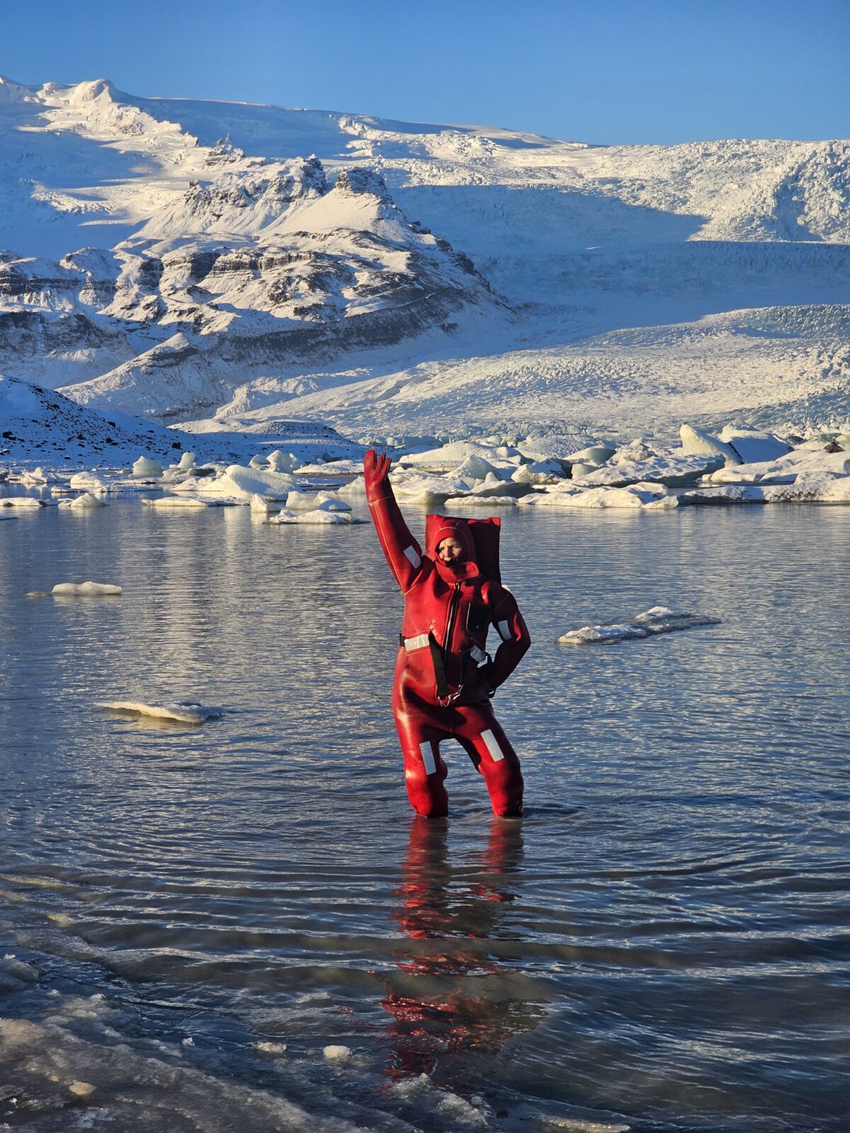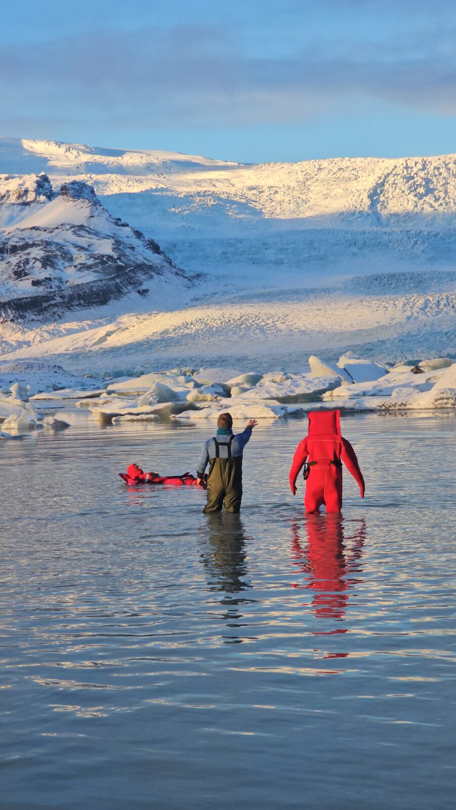 Fjallsárlón glacier lagoon ice floating is a unique floating experience in South Iceland. It offers you a moment of weightless calm, a chance to disconnect and reset both body and mind. Feel the rhythm of the icy water, breathe in the pure glacier air, and let the peaceful surroundings work their quiet magic. Your adventure begins at our tour reception by Fjallsárlón, where your guide will greet you. A short walk takes you down to the glacier lagoon, where you’ll receive a safety briefing and your floatation suit. When you are all dressed and ready, you will gently enter the water. During this adventure, you will experience the incredible sensation of floating among icebergs, safely supervised by your professional guide. Afterward, we’ll return to the reception area to warm up and enjoy a complimentary hot drink at our cozy Frost Restaurant.